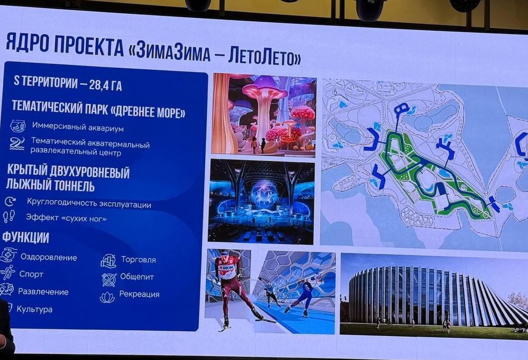 Одним из ключевых объектов станет крытый лыжный тоннель длиной примерно 2,5 километра. Он обеспечит занятия зимними видами спорта вне зависимости от погодных условий. По замыслу создателей, кататься на лыжах можно будет с октября по апрель, а при дальнейшем развитии инфраструктуры — круглогодично.