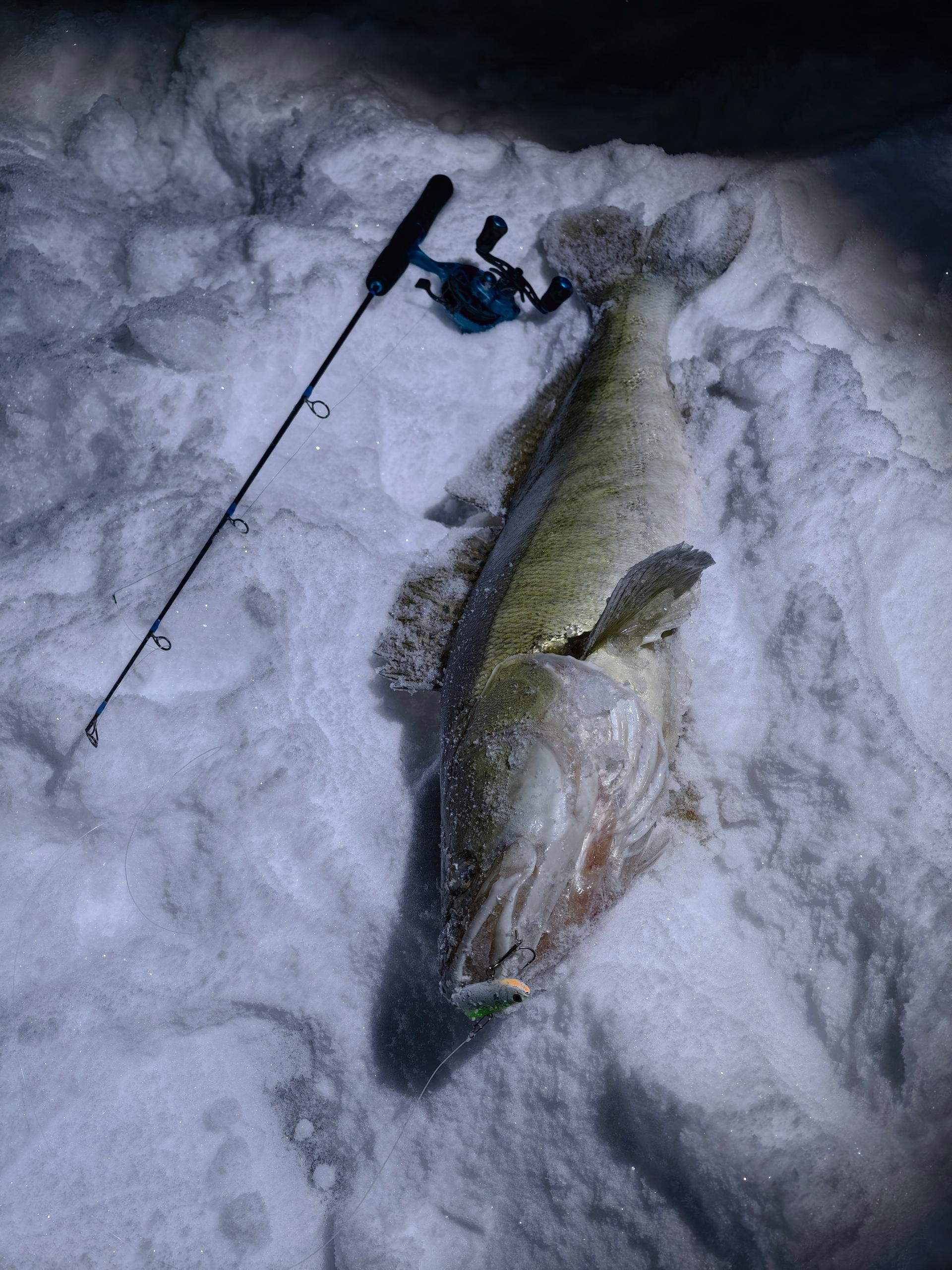 Пойманный судак стал рекордным трофеем для зимней рыбалки.