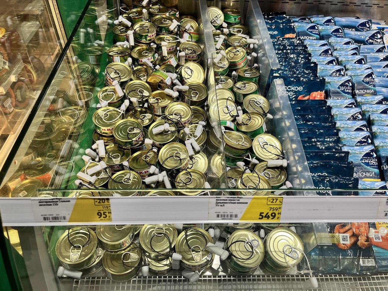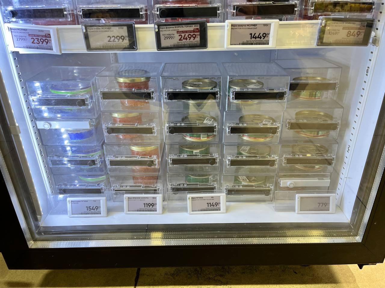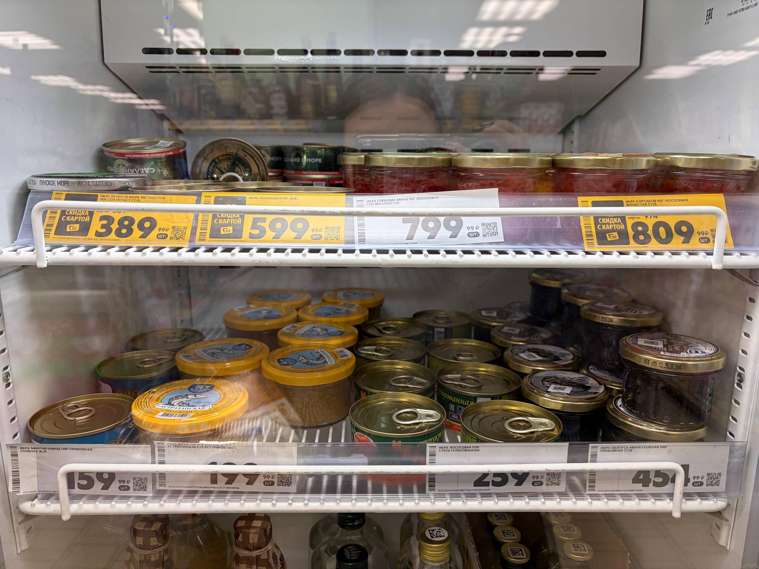 Этот супермаркет предлагает икру в больших объемах, но и цены здесь выше. Например, продукт под названием «Красное золото» весом 500 граммов оценивается в 6399 рублей — это самая дорогая и крупная упаковка. За месяц ее цена увеличилась на 100 рублей. Банки по 95 граммов стоят от 779 рублей.