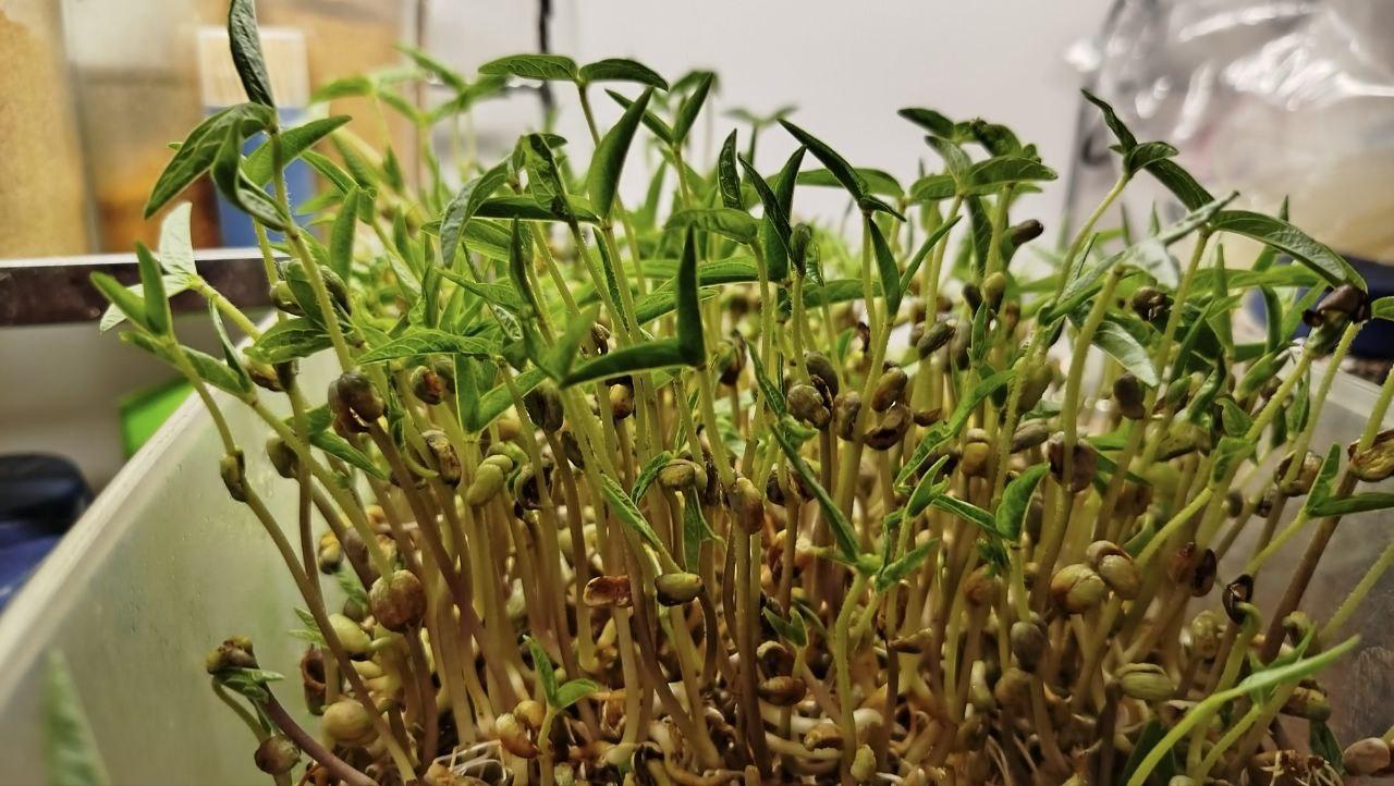 «Маш прорастает довольно быстро: замочил на сутки, а через 4 дня ешь полноценные проростки. Пробовала проращивать семена подсолнуха и гороха, фото не делала, а проростки уже съедены», — рассказывает она.