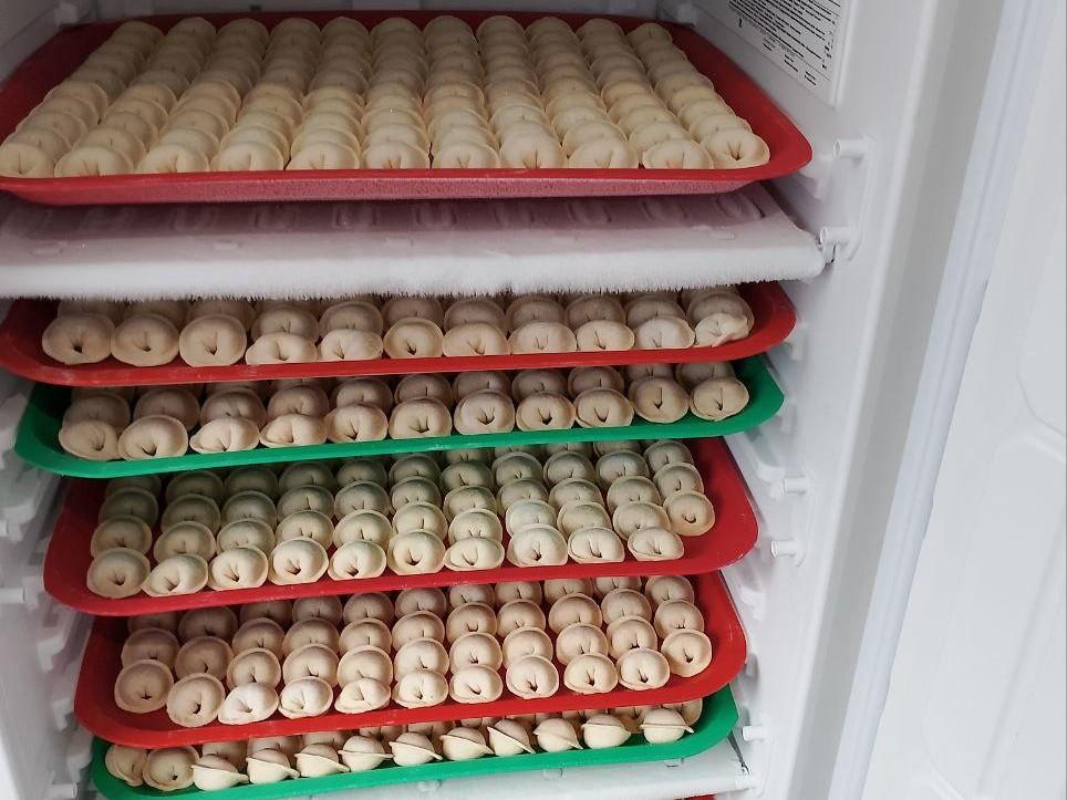Однако в запасах присутствуют не только пельмени. На фотографиях видны сотни мантов и чебуреков, которые выглядят аппетитно и приготовлены в большом объёме.