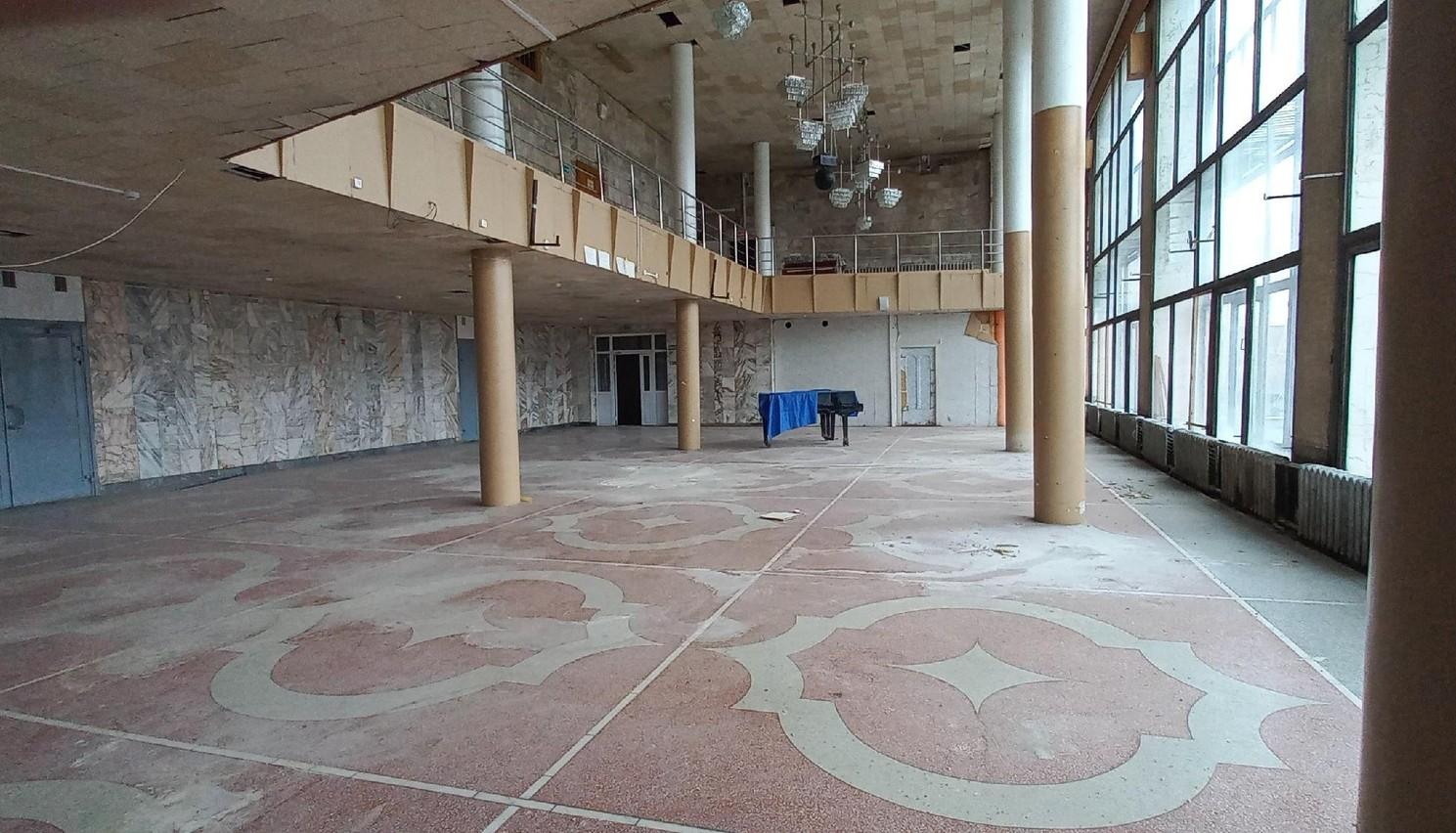 Холл здания сохранился относительно хорошо, учитывая его возраст около 40 лет.