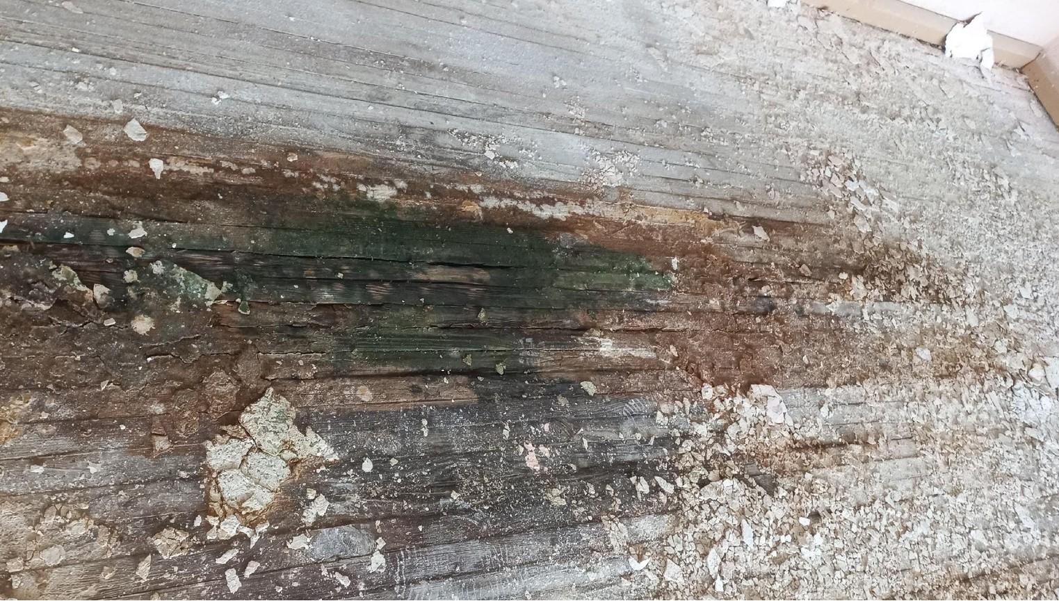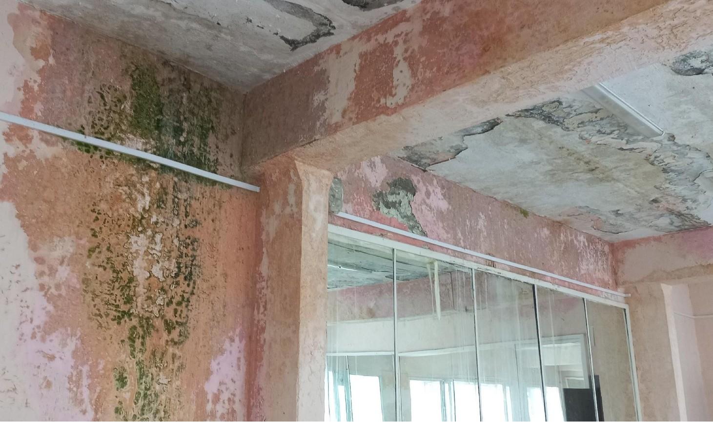 На стенах и потолке заметны обширные следы плесени.