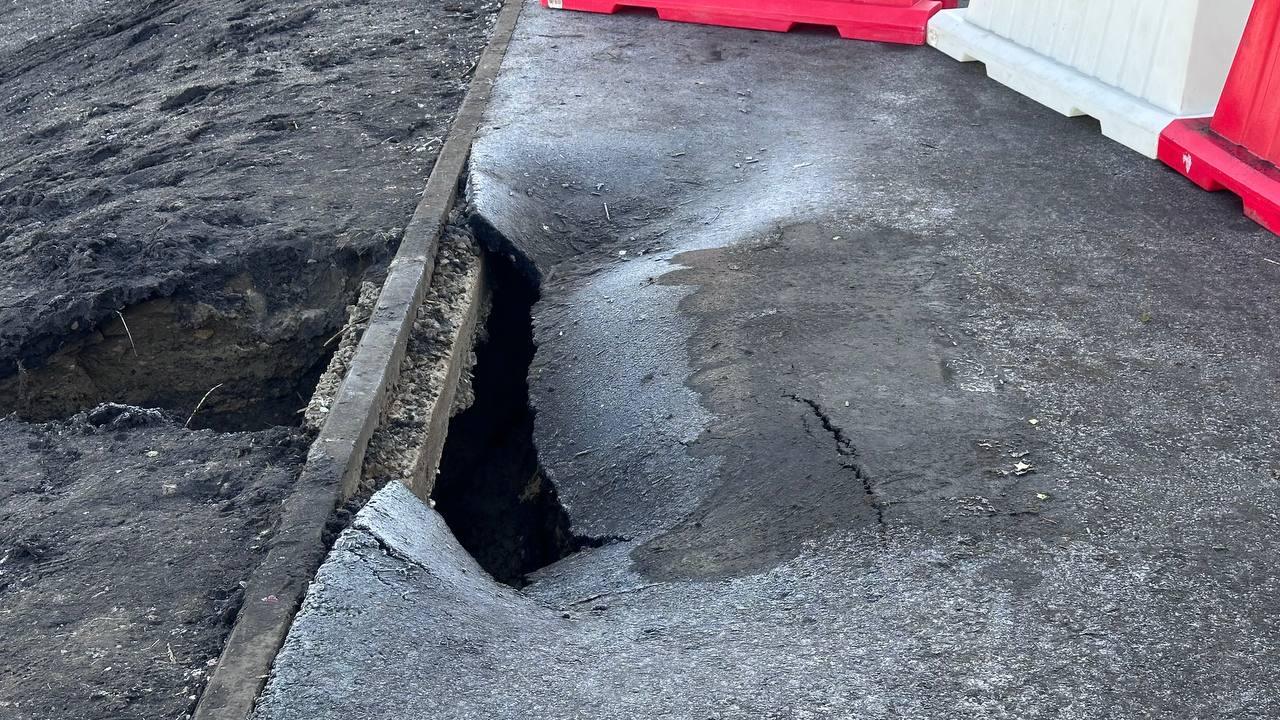 Судя по всему, асфальтное покрытие было размыто, а не провалилось.