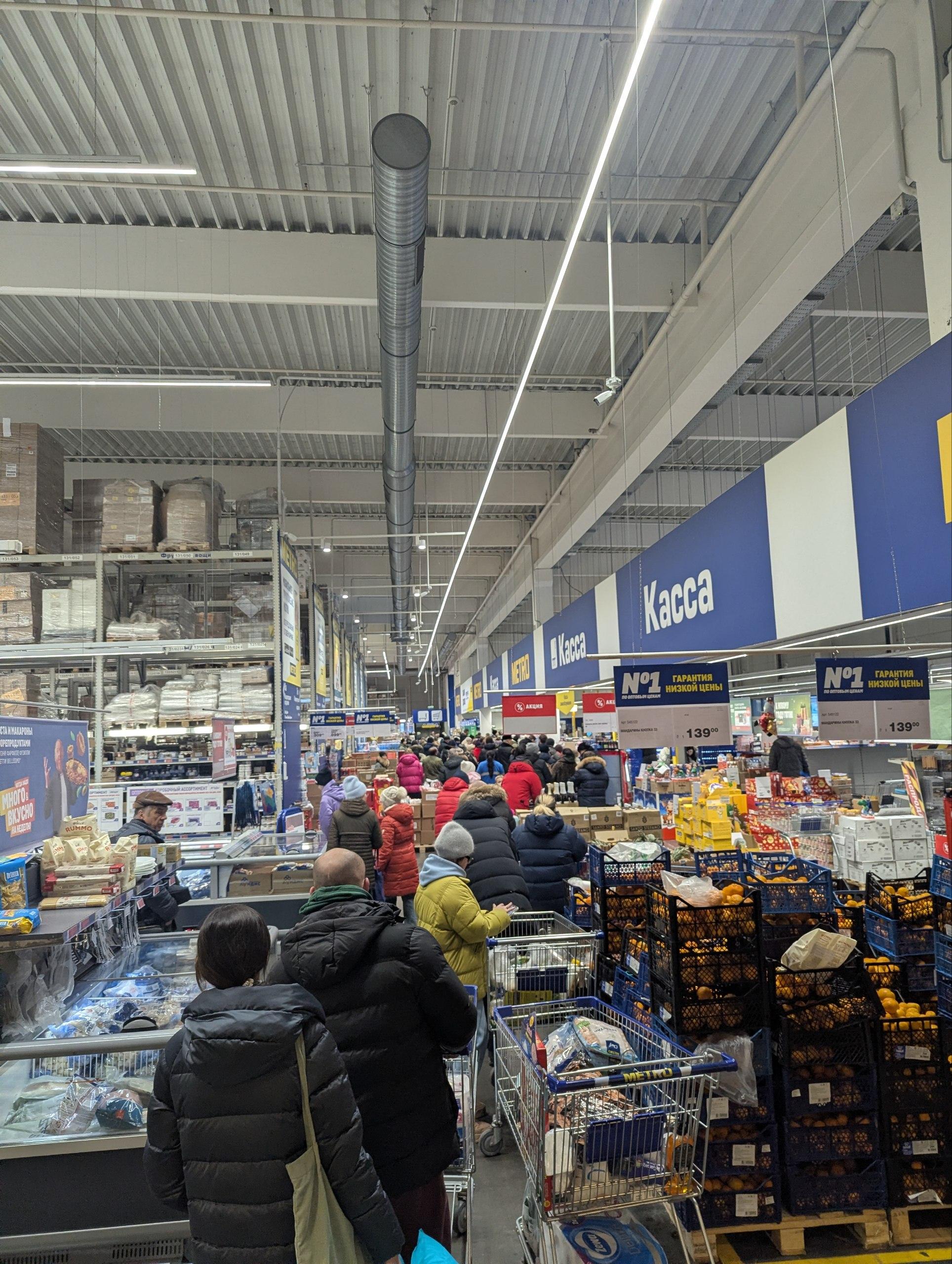 Сотрудница торгового центра «Сити Молл» сообщает: «Сегодня людей больше, чем обычно. Но приходят волнами — то слишком много, то как обычно. Наблюдала ажиотаж у островка с лотерейными билетами».