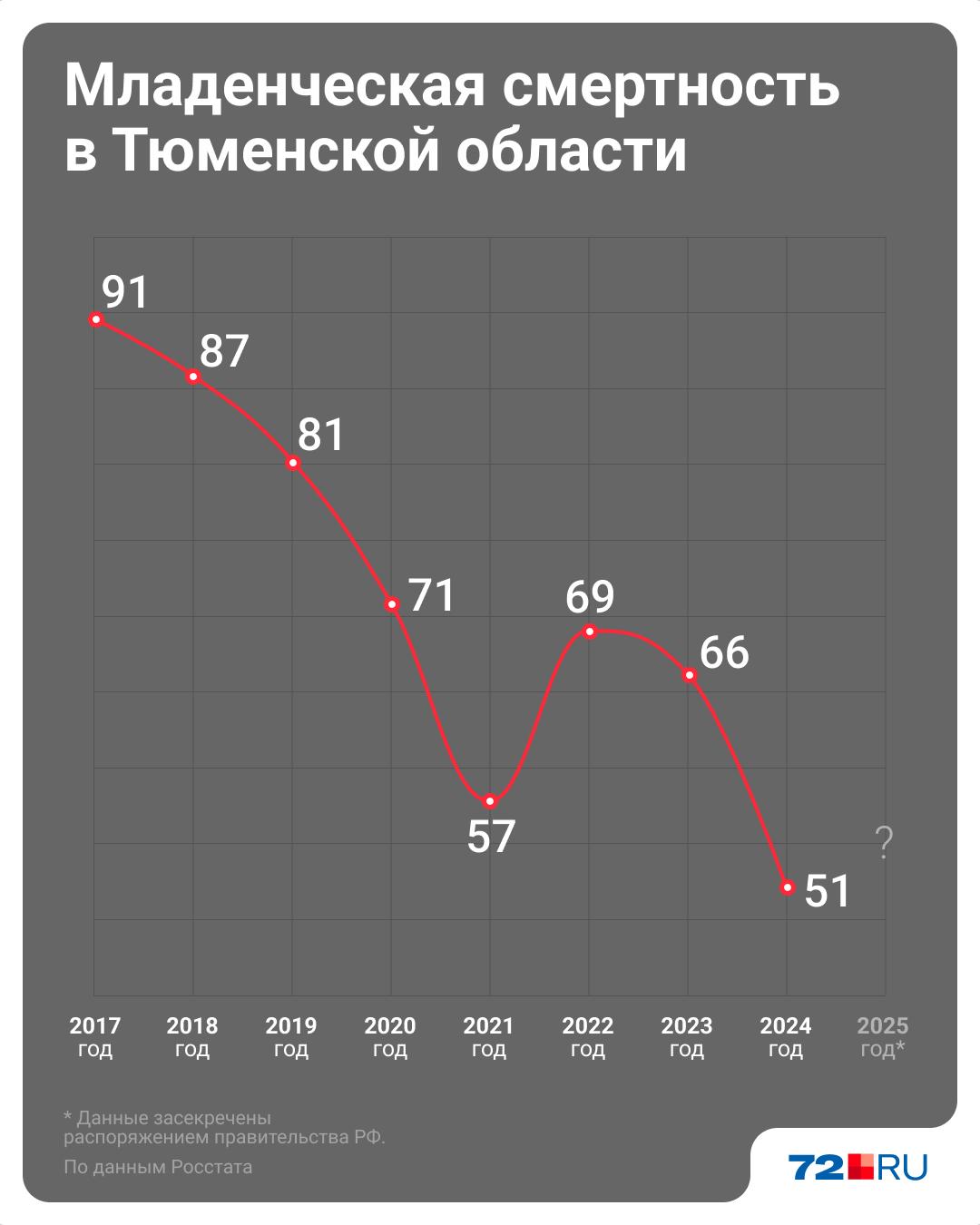 Данные Федеральной службы государственной статистики показывают снижение показателей младенческой смертности в Тюменской области. В 2023 году было зарегистрировано 66 случаев смерти детей в возрасте до одного года, а в 2024 году этот показатель составил 51.