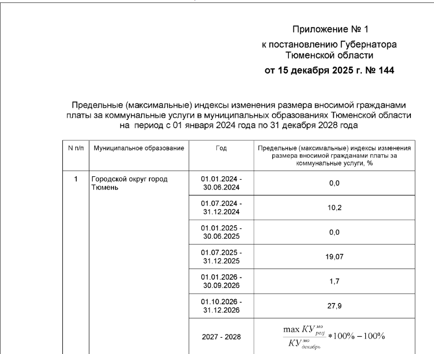 В том же сообщении уточняется, что для большинства жителей Тюмени повышение с 1 октября не превысит 25,7%, а максимальный индекс для отдельных домов может достигнуть 27,9%.