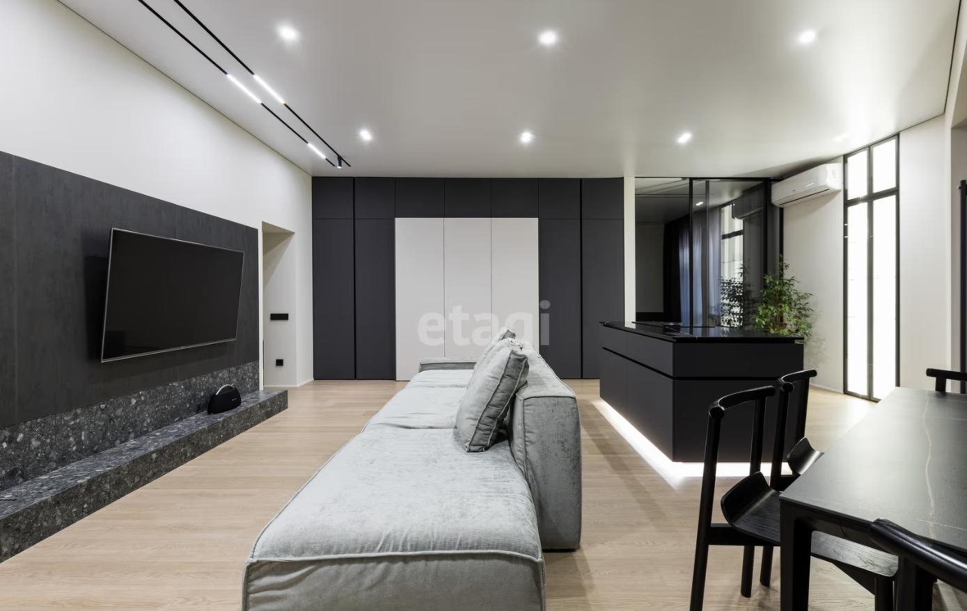 За 35 650 000 рублей в Тюмени предлагается просторная квартира с отделкой премиум-класса, итальянской мебелью и сауной.