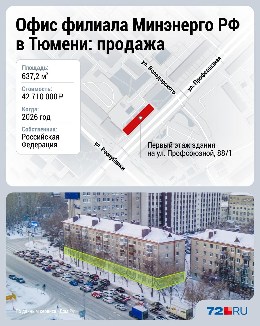 В Тюмени на торги выставили первый этаж многоквартирного жилого дома по улице Профсоюзной. Помещение площадью 637 квадратных метров занимает Тюменский центр научно-технической информации (Тюменский ЦНТИ) — филиал ФГБУ «РЭА» Минэнерго России. Начальная стоимость лота составляет 42,7 миллиона рублей.