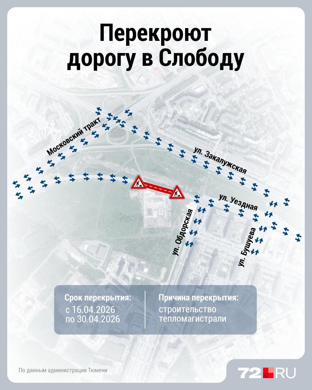 «В связи с выполнением работ по строительству тепловой сети в период с 16 апреля 2026 года по 30 апреля 2026 года планируется прекращение движения транспортных средств на автомобильной дороге по улице Уездной», — указано в информационном сообщении департаменте транспорта Тюмени.