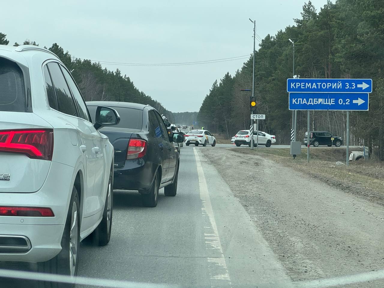 На Червишевском тракте 21 апреля наблюдается интенсивное движение: сотни тюменцев направляются к кладбищу, чтобы почтить память усопших в Радоницу. Пробка на этом участке сохраняется уже несколько часов.