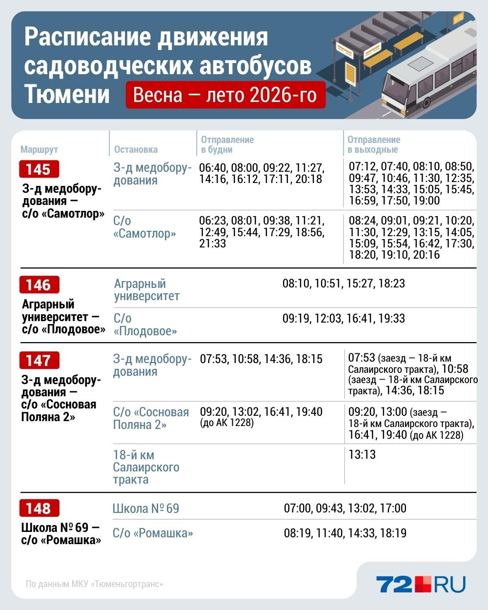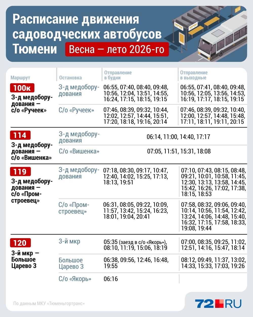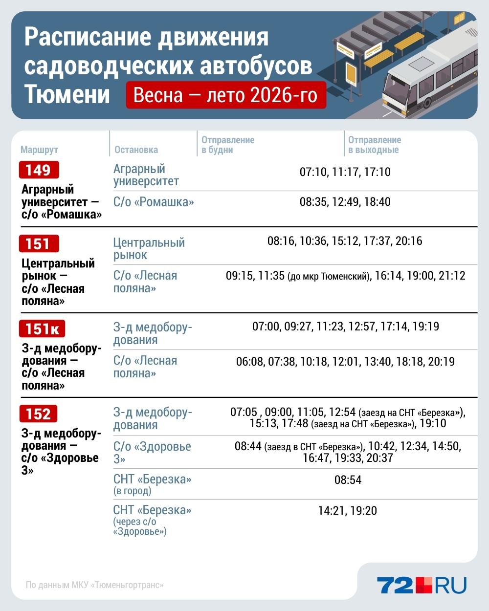 Представители МКУ «Тюменьгортранс» сообщили: «На дачных направлениях в этом году будут работать 57 автобусов в рабочие дни, 75 — в выходные».
