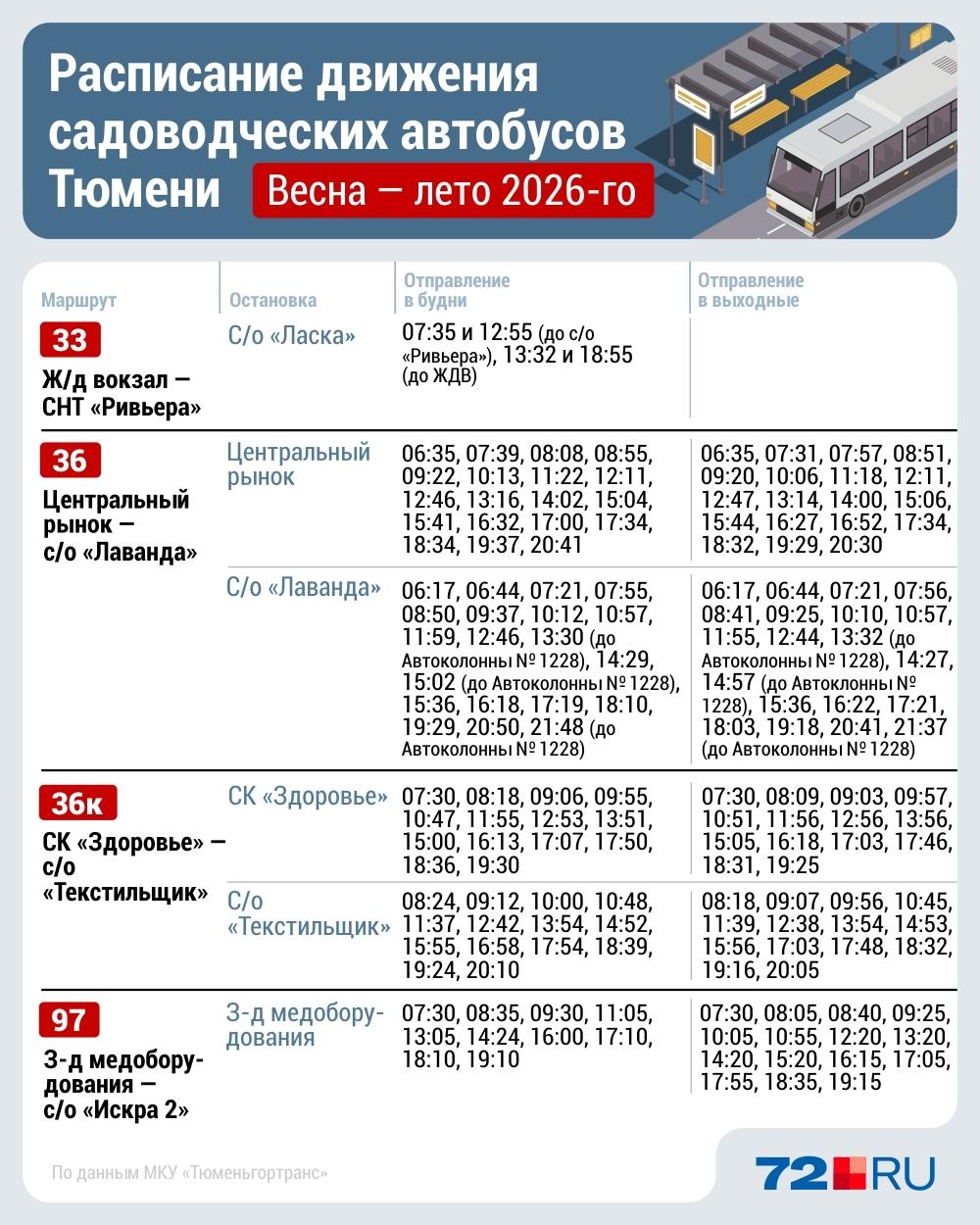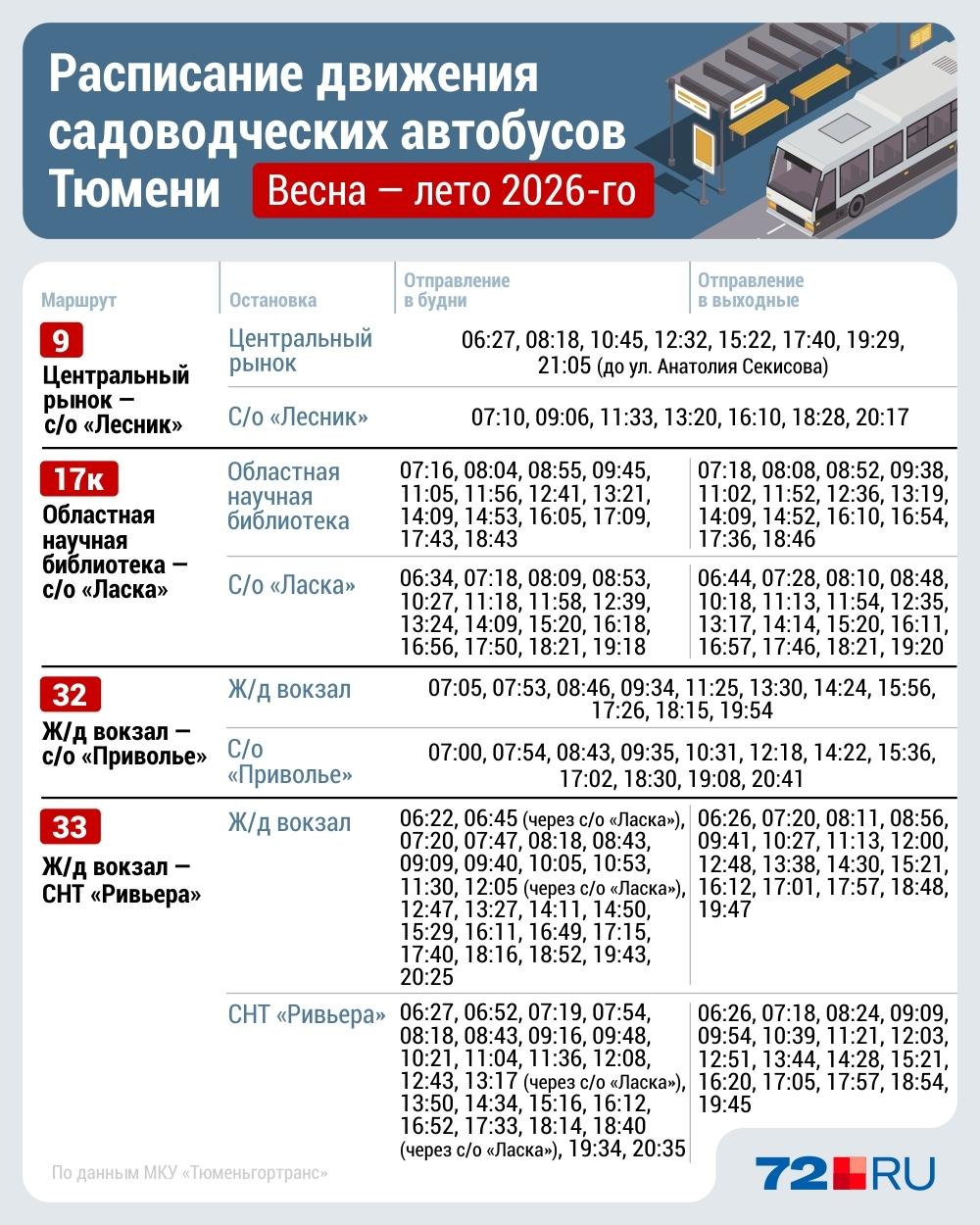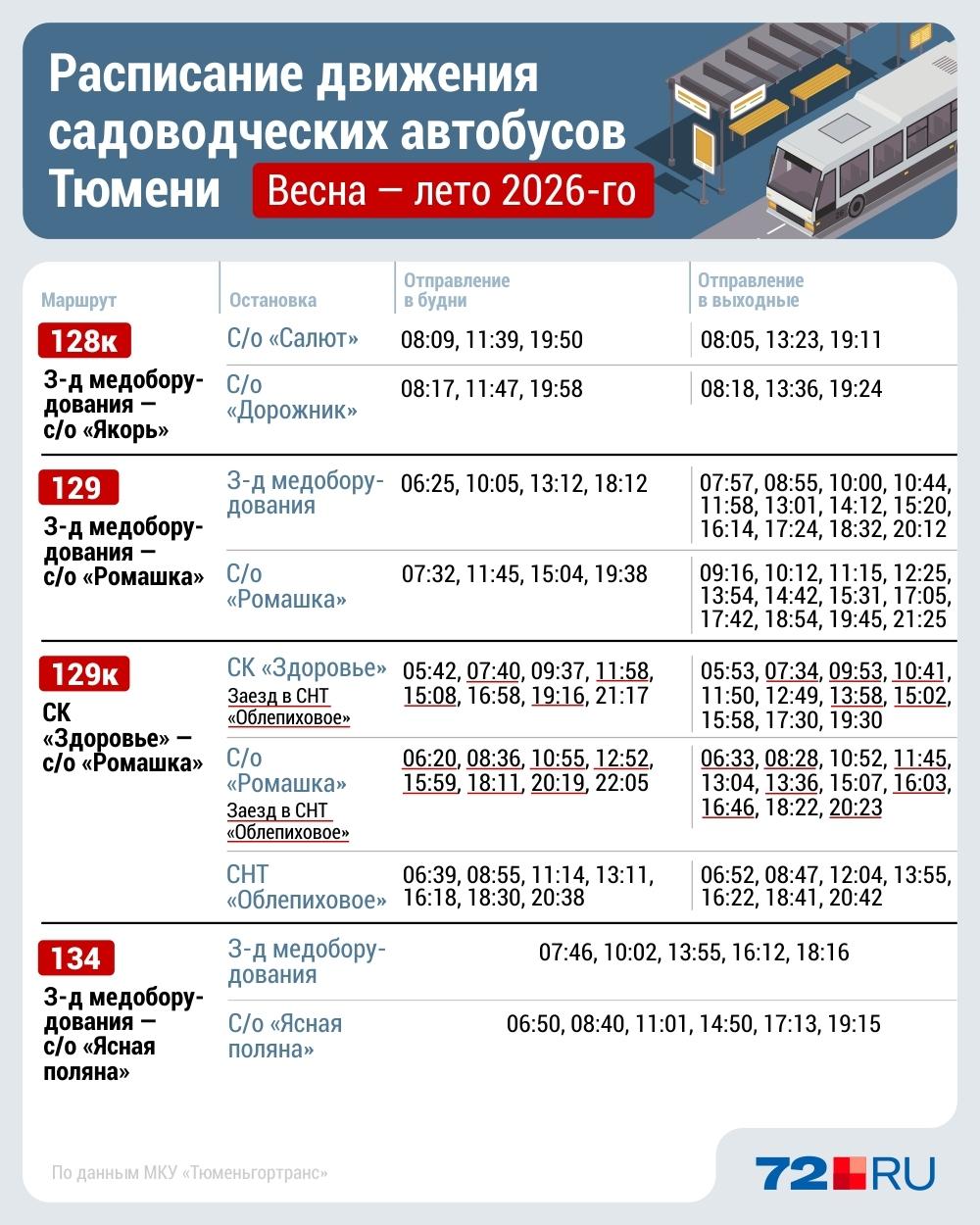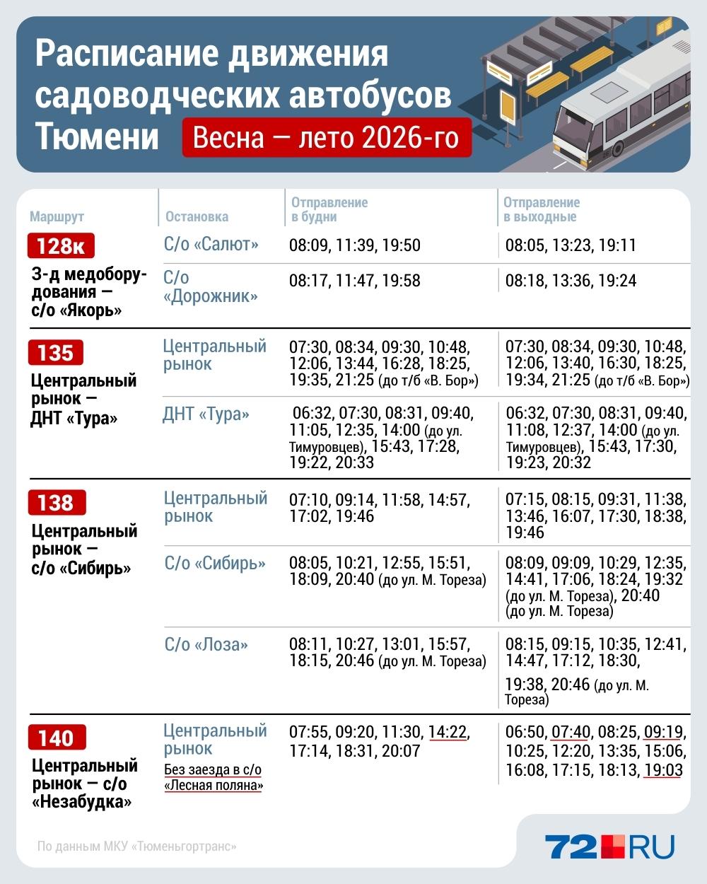 Представители МКУ «Тюменьгортранс» сообщили: «На дачных направлениях в этом году будут работать 57 автобусов в рабочие дни, 75 — в выходные».