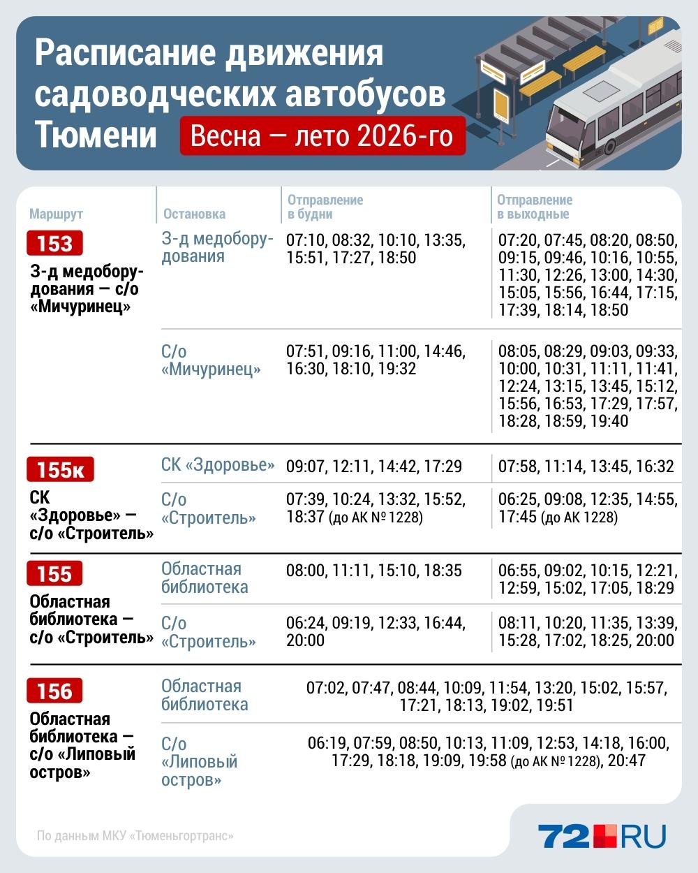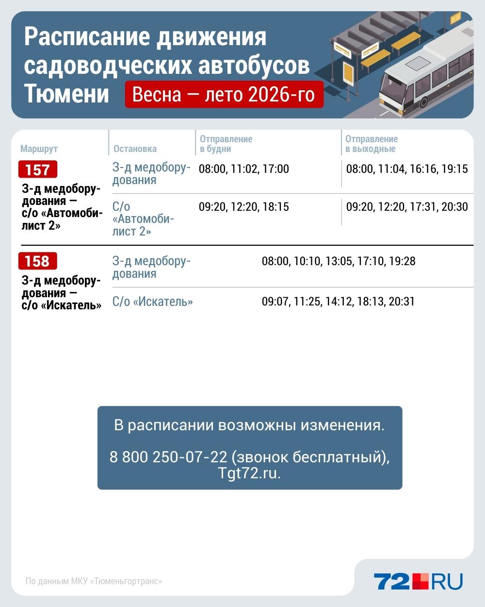 Обновлённое расписание вскоре появится на остановках вдоль маршрутов. Актуальную информацию также можно уточнить на сайте tgt72.ru в разделе «Расписание» или по телефону справочной службы: 8 800 250-07-22.
